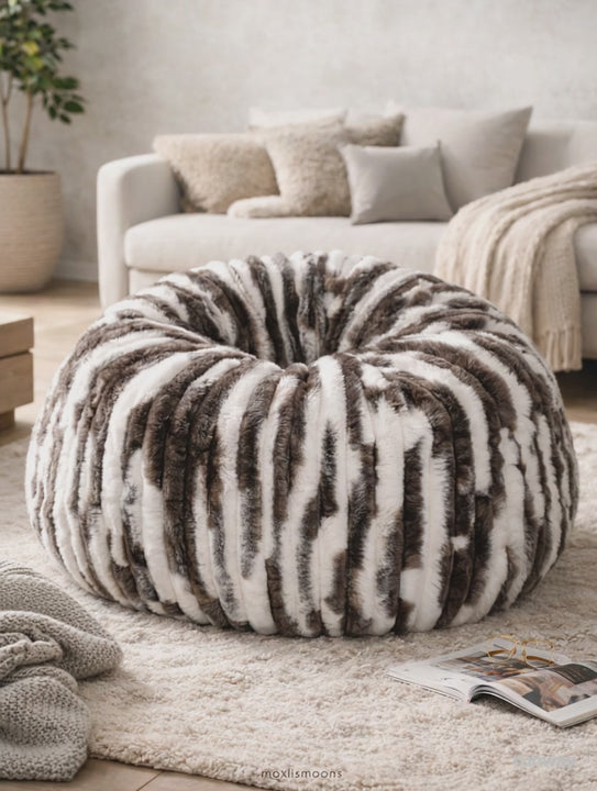 Mollismoons Limited Edition Luxury Faux Fur Bean Bag Cover XXXL 50 Inch Single Seater, Super Soft Striped Design with Durable Matte Base, Bean Bag Cover Only – Fill 2.5 kg Beans Separately