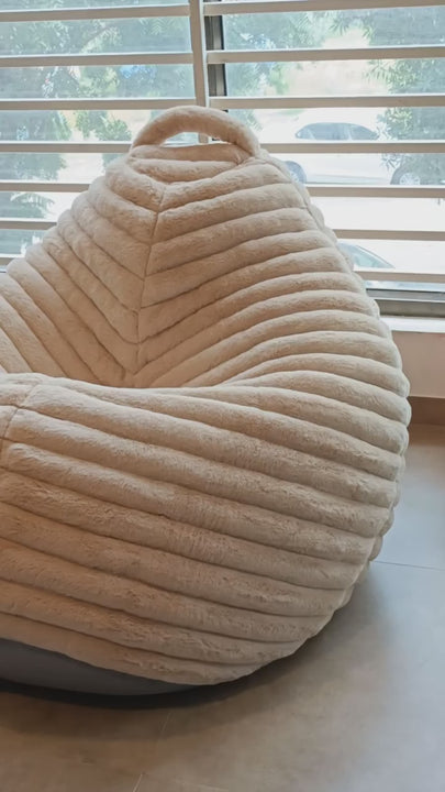 Mollismoons fur bean bag chair ivory color jumbo size for adults round shape (stripes pattern)luxury/cozy/comfy bean bags