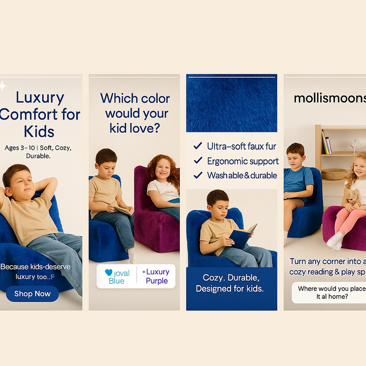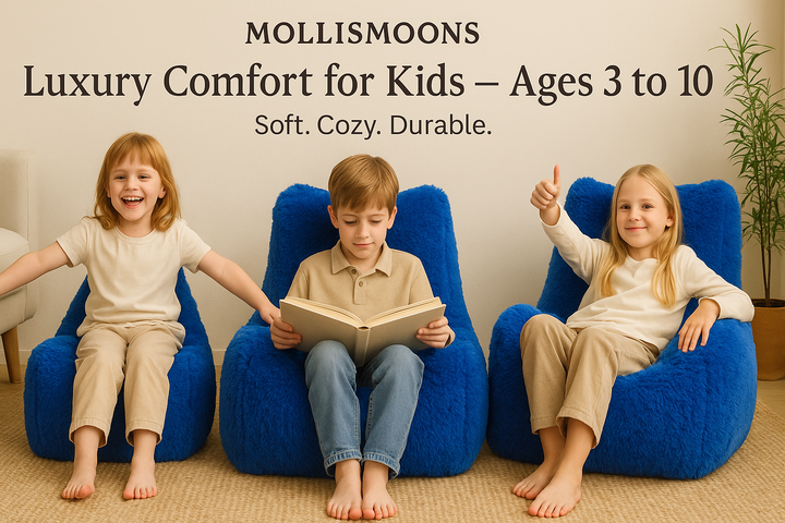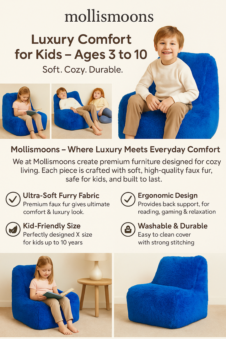 Give your child a cozy corner. The Mollismoons Luxury Fur Bean Bag Chair is designed in XL kid-size for ages 3–10, combining plush comfort with everyday durability.