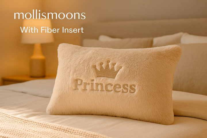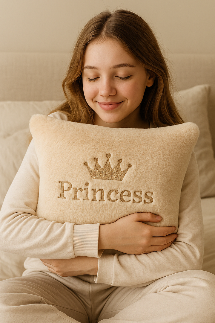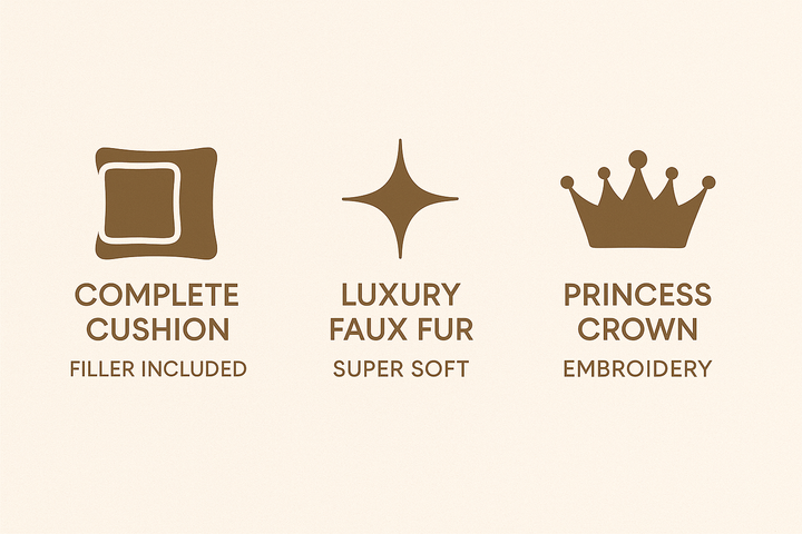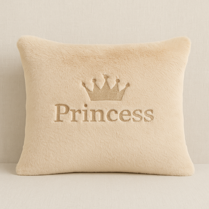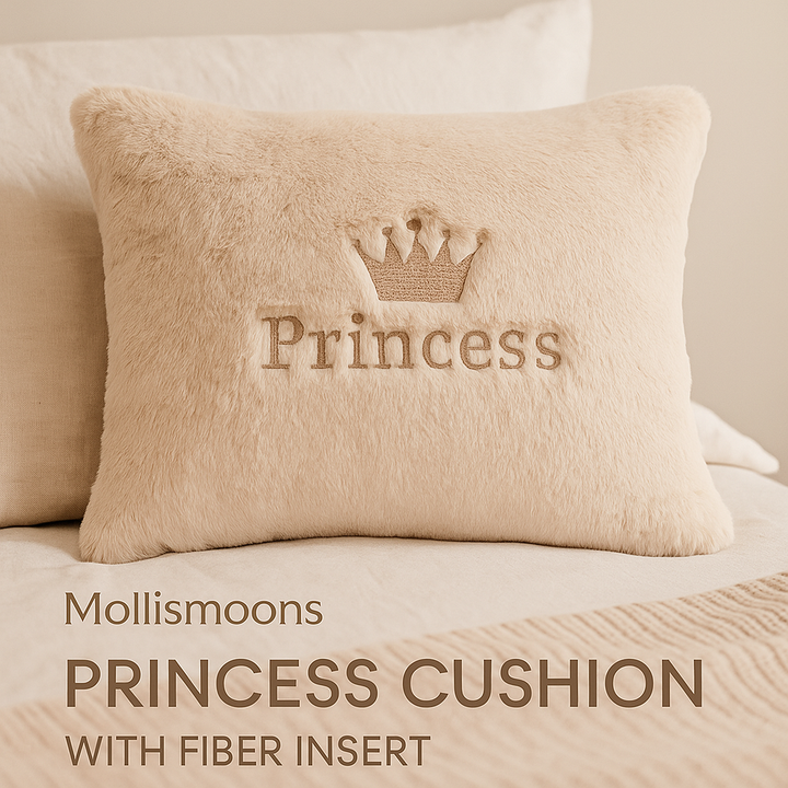 Princess Cushion with Insert | Beige Faux Fur Kids Cushion | Mollismoons® Luxury Home Décor