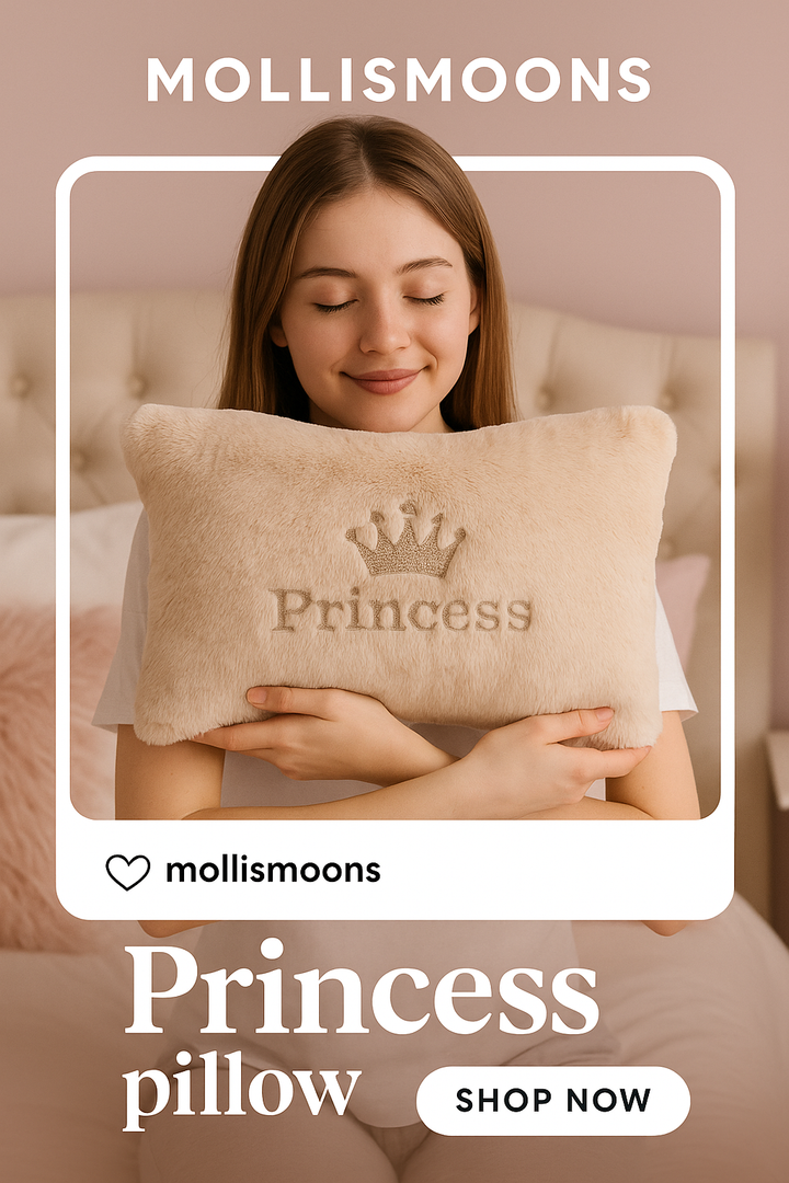 The Mollismoons Princess Cushion is designed to add warmth, charm and elegance to any space. Crafted in ultra-soft beige faux fur and embroidered with a delicate princess crown, it’s the perfect blend of comfort and sophistication.